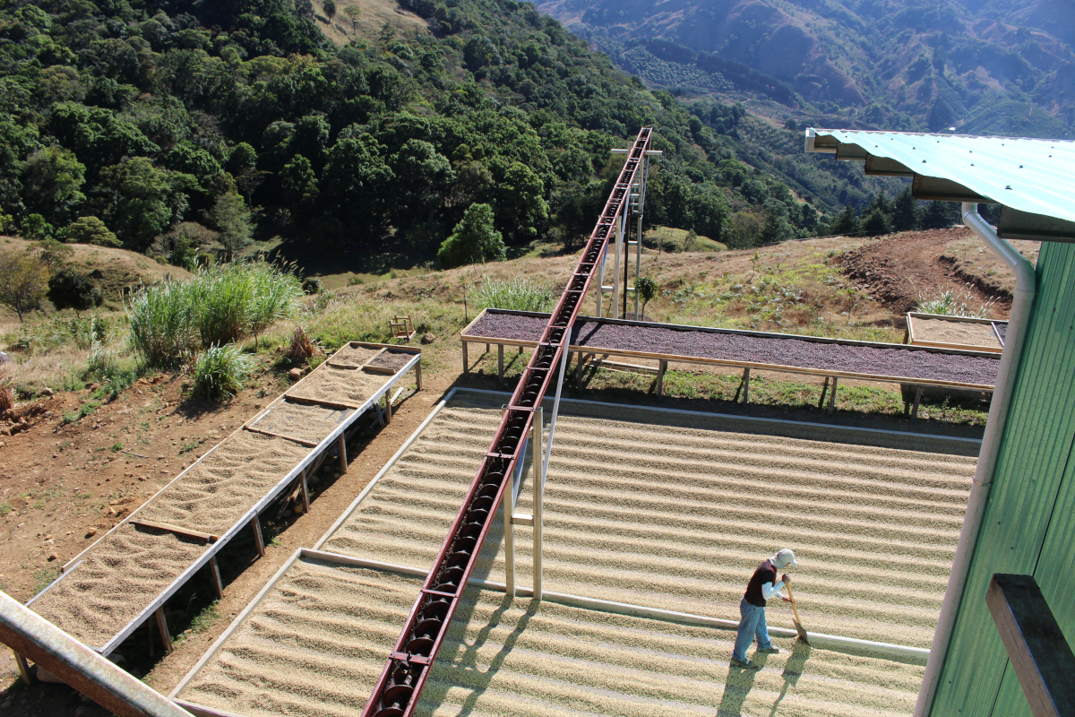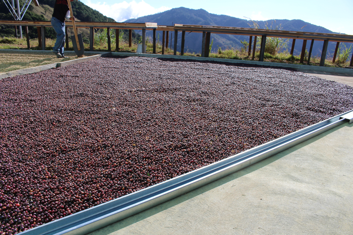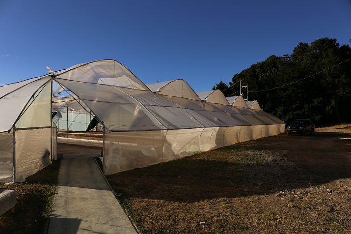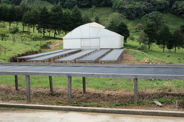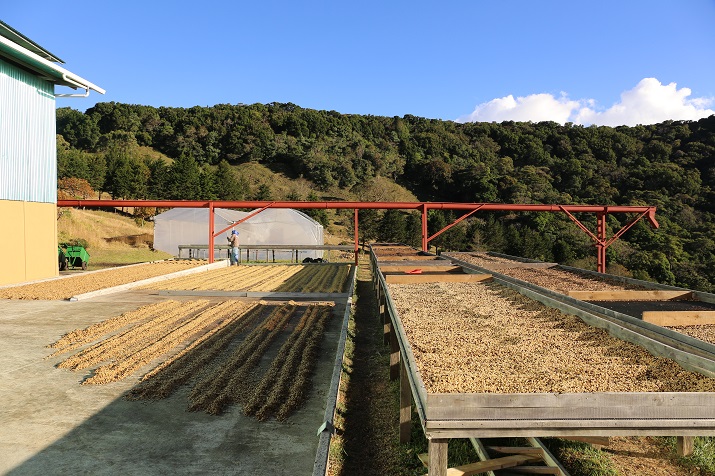 ※山の頂上付近にミルがあるため風が吹き抜ける環境。ミルの標高が2,150mと高く気温は低いがこの風により乾燥工程が程よく進み天然のスロードライングとなる。ロヘルは天日を好むため乾燥場の増設を行っている。15-16ではパティオを増設した。今後はベッドも増設していく。多くの農地を所有しているためグアルディオラも導入した。