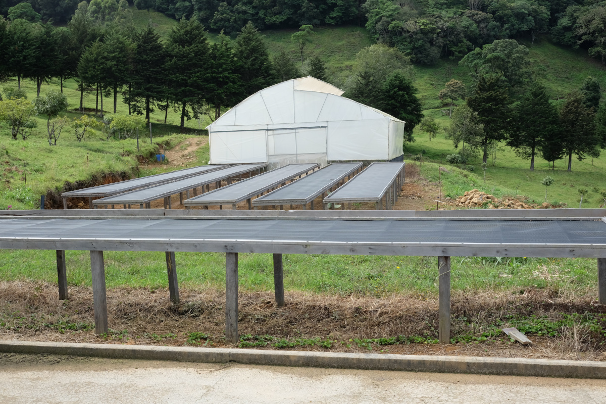 ※山の頂上付近にミルがあるため風が吹き抜ける環境。ミルの標高が2,150mと高く気温は低いがこの風により乾燥工程が程よく進み天然のスロードライングとなる。ロヘルは天日を好むため乾燥場の増設を行っている。15-16ではパティオを増設した。今後はベッドも増設していく。多くの農地を所有しているためグアルディオラも導入した。